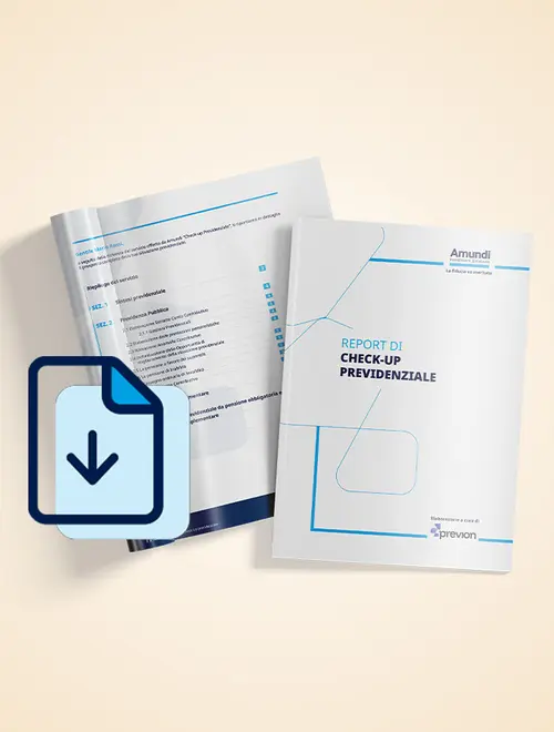 Le proiezioni prodotte da Amundi PensioNEXT sono da ritenersi puramente indicative, non costituiscono attività di consulenza in materia di investimenti e non offrono alcuna garanzia di ottenere i risultati simulati. Le informazioni fornite da Amundi PensioNEXT non costituiscono né devono essere intese come una comunicazione di marketing, una ricerca in materia di investimenti, un’analisi finanziaria o una raccomandazione di investimento. L’obiettivo del Check-up di Amundi PensioNEXT è aiutare l’utente a raggiungere maggior consapevolezza sui risultati potenziali della previdenza pubblica e complementare, consentendo una stima sintetica del gap previdenziale. Con riferimento al Check-up Base, le stime sono fortemente condizionate dai dati impostati e dalle premesse di calcolo scelte dall’utente.